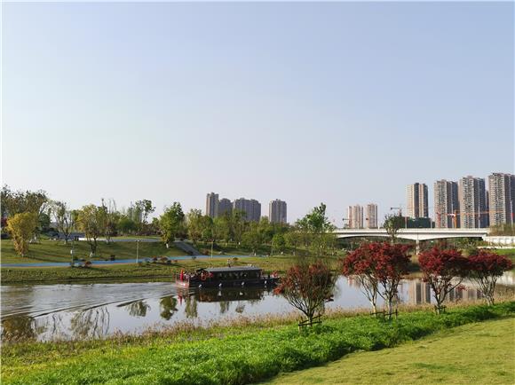 5月8日上午,銅梁區(qū)淮遠(yuǎn)河原鄉(xiāng)中央公園段,游客乘坐觀光船在河面上游覽。銅梁區(qū)淮遠(yuǎn)河上的游船。通訊員 陳剛 攝“河面很干凈,水質(zhì)很清澈