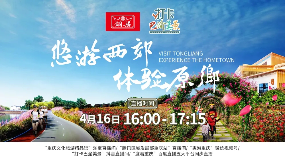 人間四月芳菲盡,大美銅梁花滿城,4月16日,打卡巴渝美景,全媒體推介活動將在銅梁西郊花語悠游谷精彩上演。此次直播主題為“悠游西郊,體